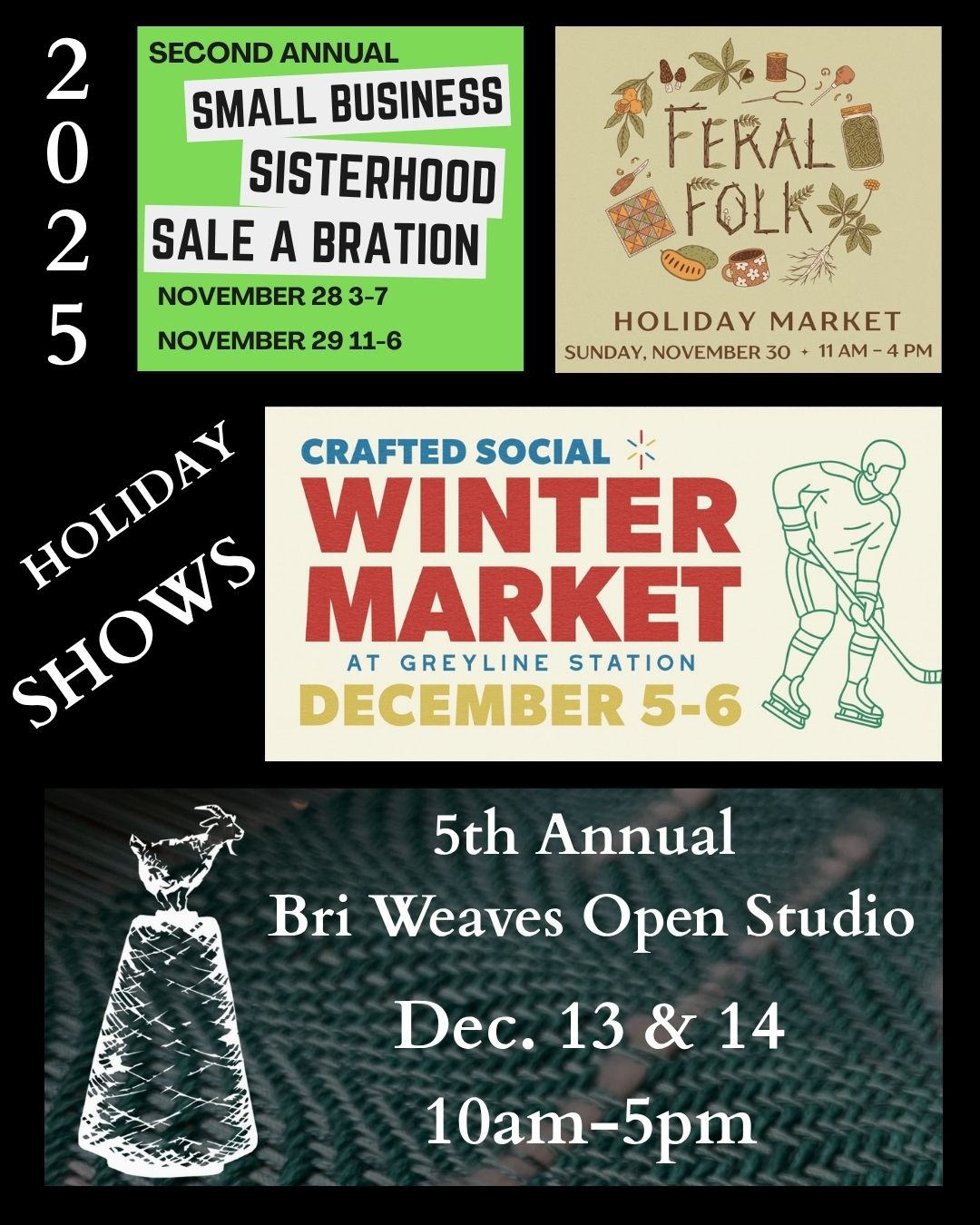 Find Bri Weaves goods in-person at one of our remaining 2025 shows. If you shop this season, please support us & the economic blackout by buying SMALL.