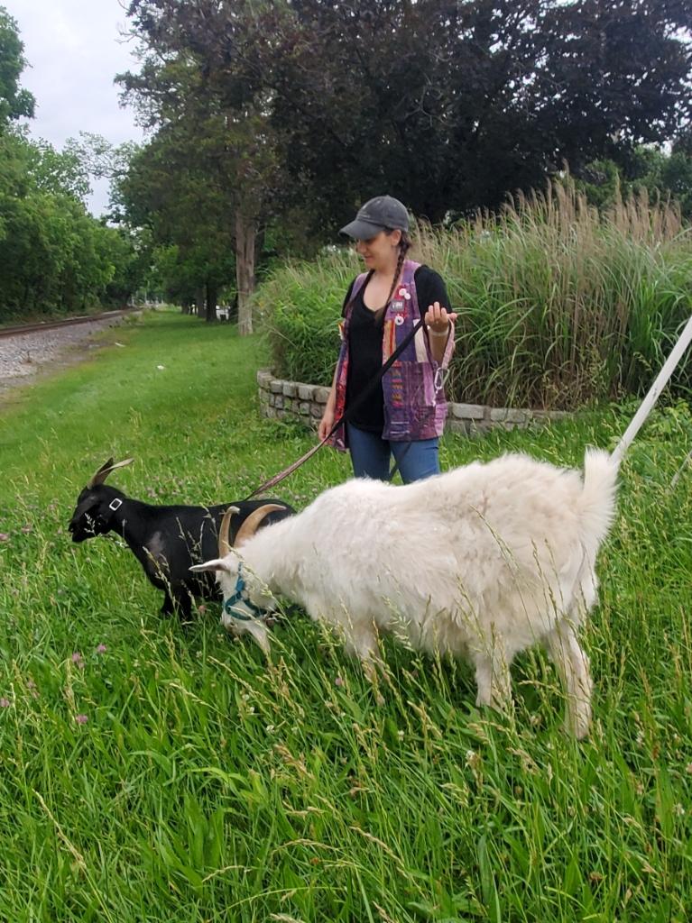 Briana Frederick is a weaver, wife, human & goat mama in Louisville, Kentucky. She brings together varied fibers, textures & colors to create functional wearable art, most often in the form of cowls, scarves & neckerchiefs. She also has two Nigora goats, Betty & Boon, who produce fiber for many pieces.