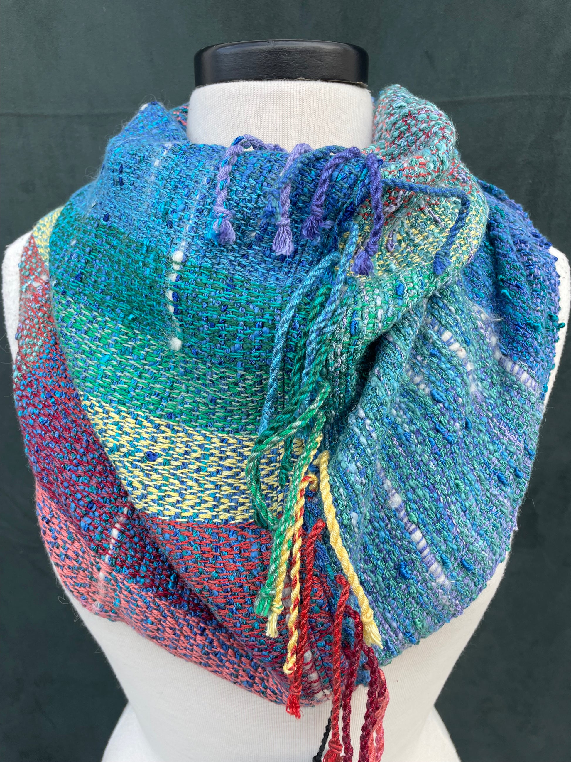 Cowls are the signature product of Bri Weaves & my favorite, both to make & to wear. They are short & wide infinity scarves; they only go ‘round your head once. I promise there’s no right or wrong way to wear them. Put it over your head & it’s perfect. Everyone comes to enjoy adjusting them their own way. I did make a video that may help if you really want direction.