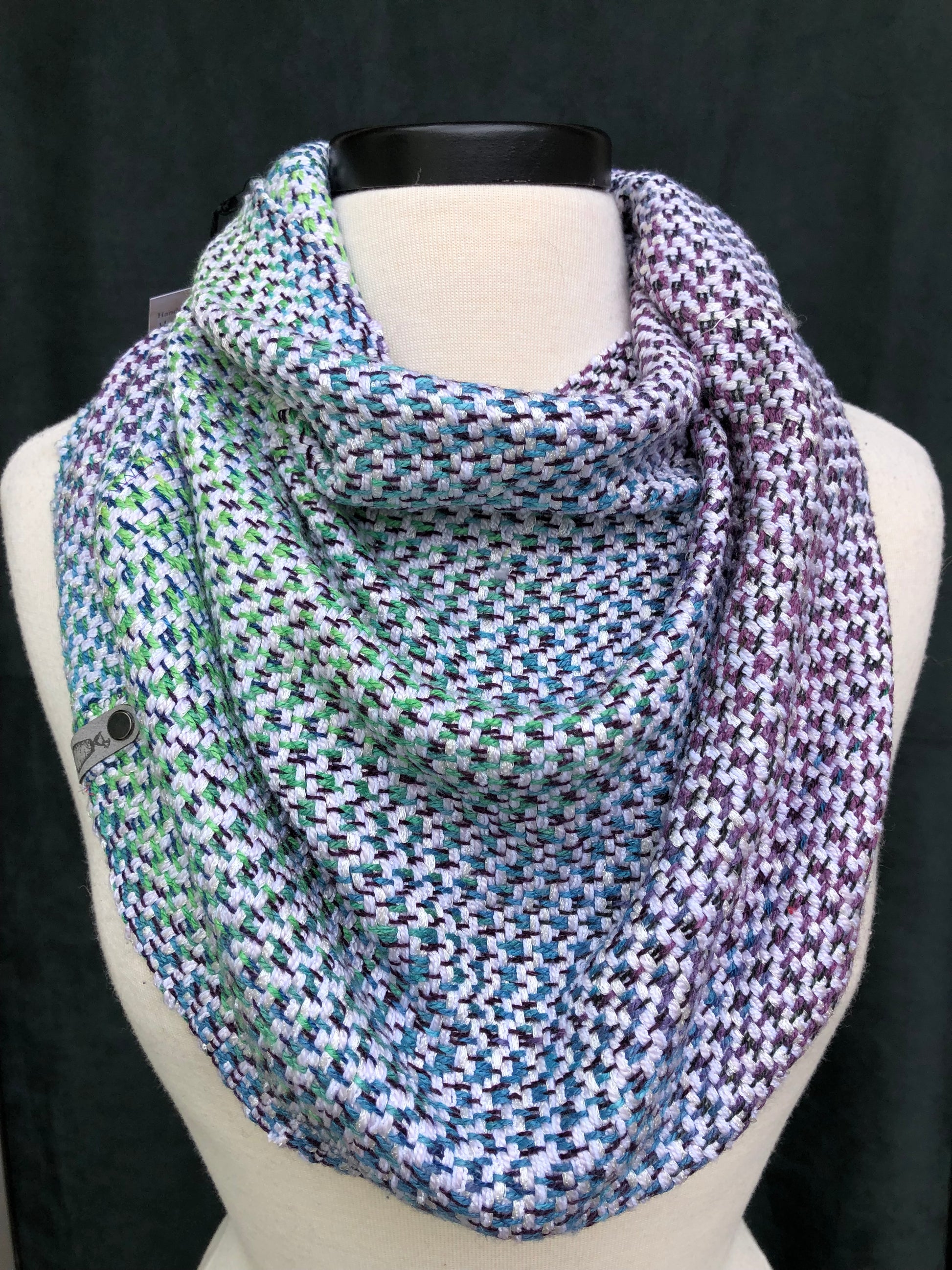 Cowls are the signature product of Bri Weaves & my favorite, both to make & to wear. They are short & wide infinity scarves; they only go ‘round your head once. I promise there’s no right or wrong way to wear them. Put it over your head & it’s perfect. Everyone comes to enjoy adjusting them their own way. I did make a video that may help if you really want direction.