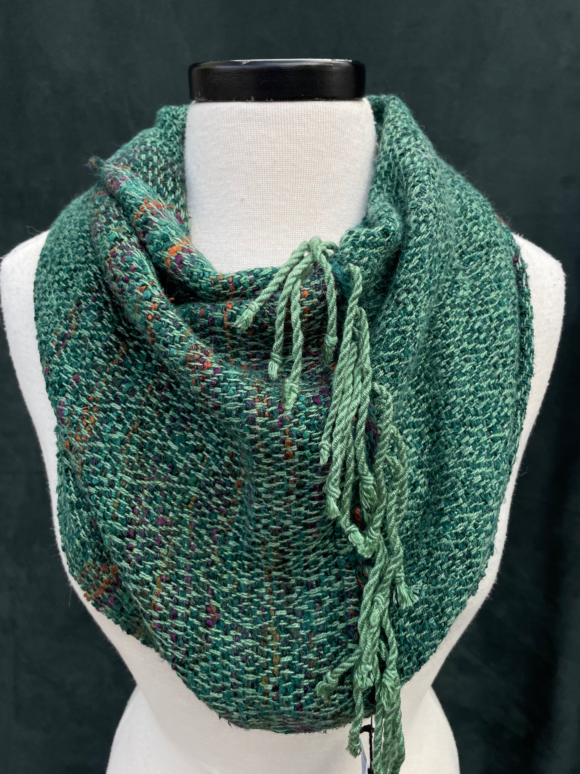 Cowls are the signature product of Bri Weaves & my favorite, both to make & to wear. They are short & wide infinity scarves; they only go ‘round your head once. I promise there’s no right or wrong way to wear them. Put it over your head & it’s perfect. Everyone comes to enjoy adjusting them their own way. I did make a video that may help if you really want direction.