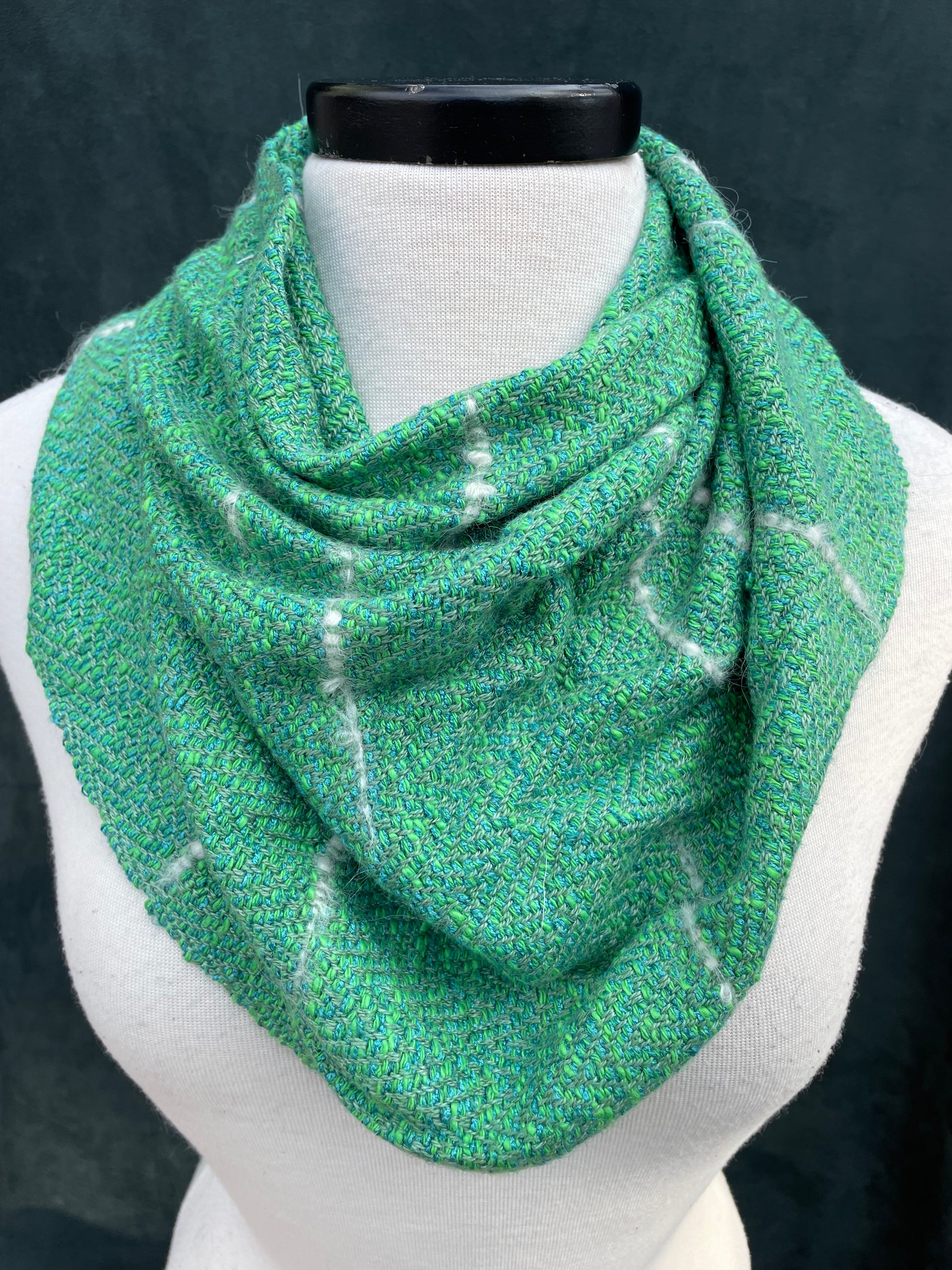 Cowls are the signature product of Bri Weaves & my favorite, both to make & to wear. They are short & wide infinity scarves; they only go ‘round your head once. I promise there’s no right or wrong way to wear them. Put it over your head & it’s perfect. Everyone comes to enjoy adjusting them their own way. I did make a video that may help if you really want direction.