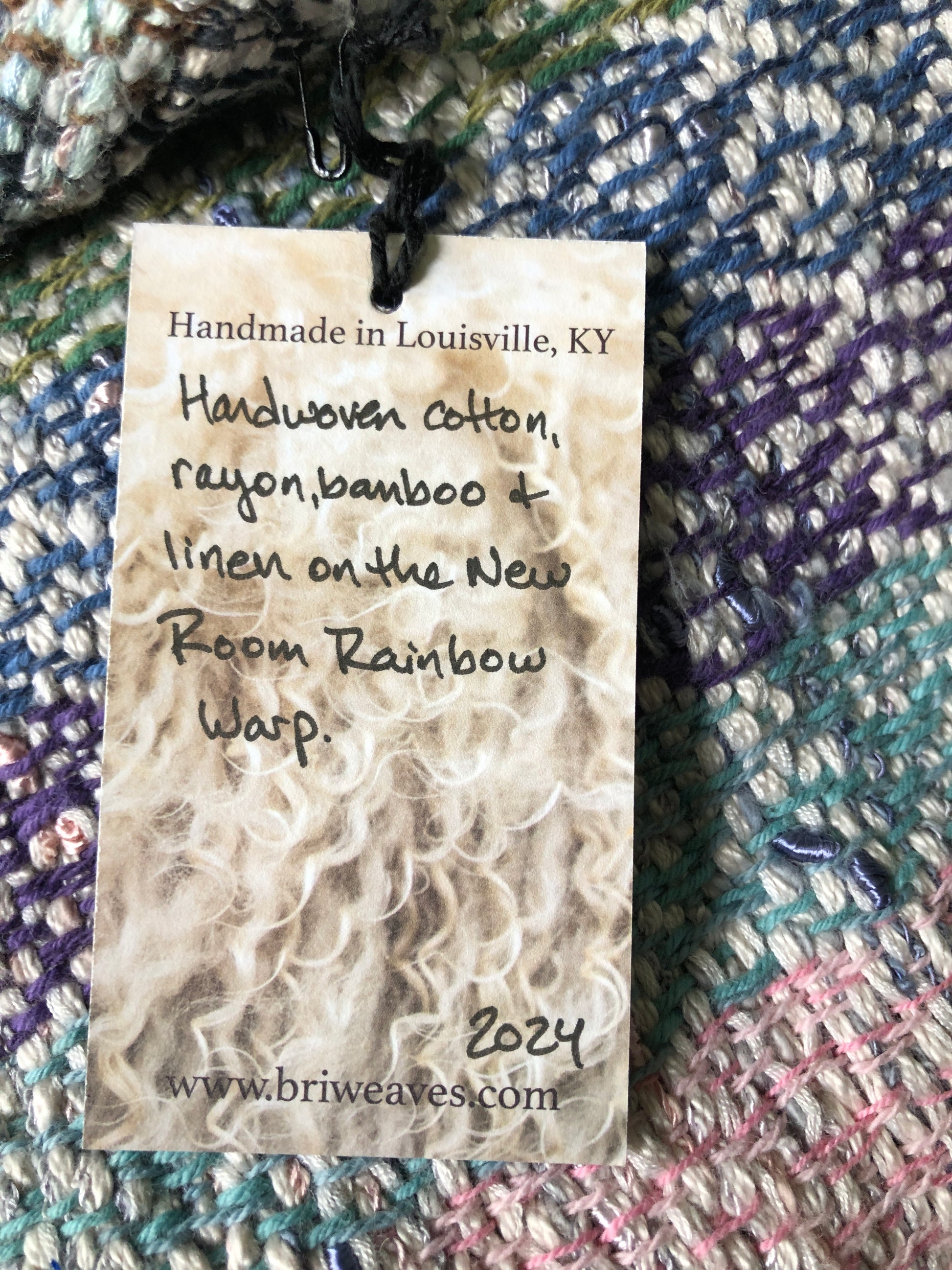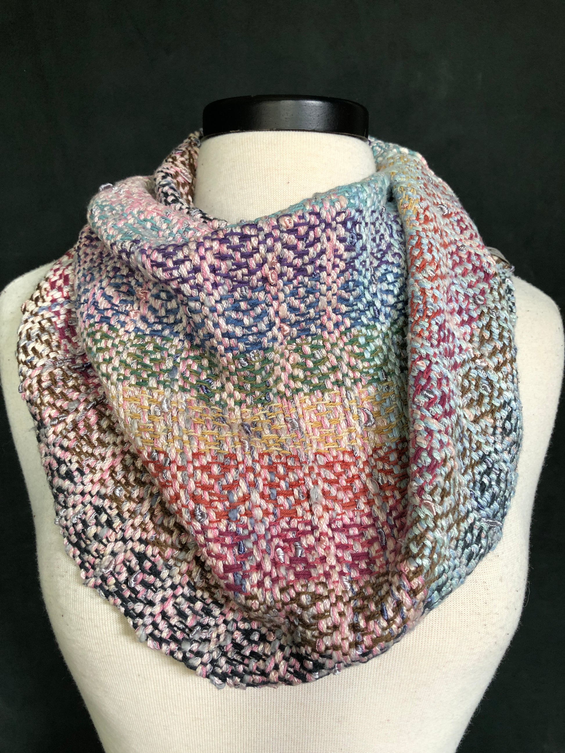 Cowls are the signature product of Bri Weaves & my favorite, both to make & to wear. They are short & wide infinity scarves; they only go ‘round your head once. I promise there’s no right or wrong way to wear them. Put it over your head & it’s perfect. Everyone comes to enjoy adjusting them their own way. I did make a video that may help if you really want direction.