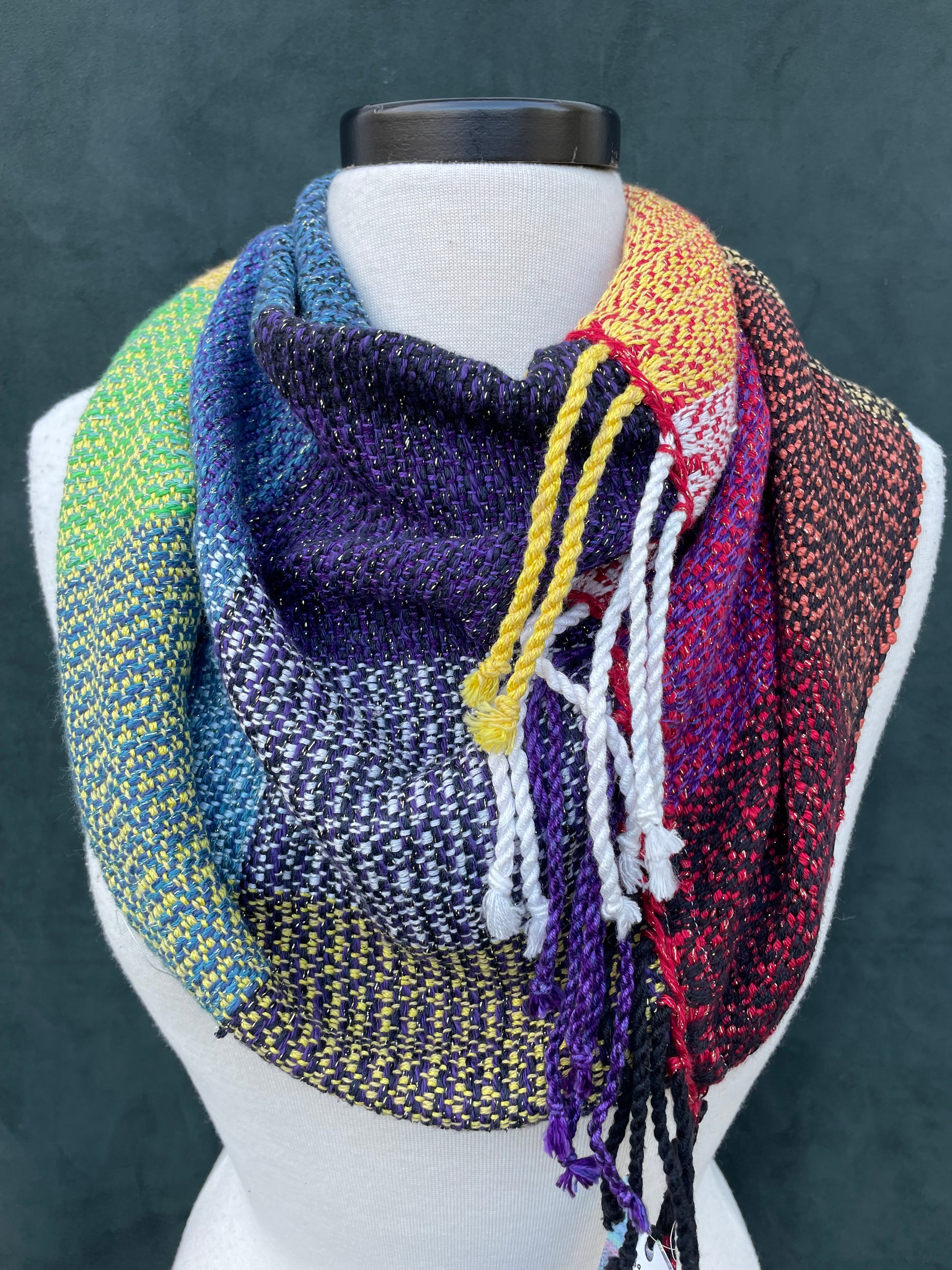Cowls are the signature product of Bri Weaves & my favorite, both to make & to wear. They are short & wide infinity scarves; they only go ‘round your head once. I promise there’s no right or wrong way to wear them. Put it over your head & it’s perfect. Everyone comes to enjoy adjusting them their own way. I did make a video that may help if you really want direction.