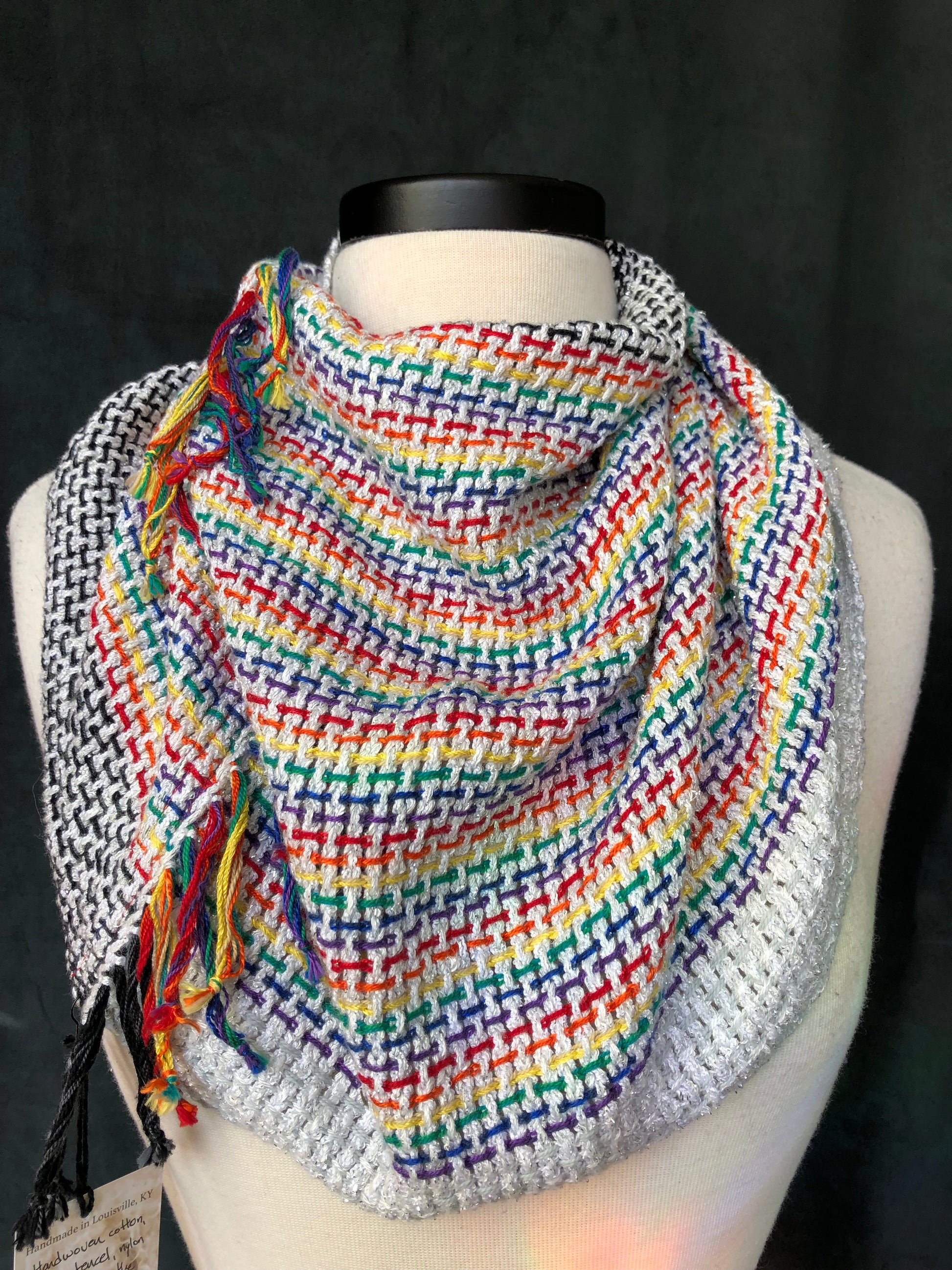 Cowls are the signature product of Bri Weaves & my favorite, both to make & to wear. They are short & wide infinity scarves; they only go ‘round your head once. I promise there’s no right or wrong way to wear them. Put it over your head & it’s perfect. Everyone comes to enjoy adjusting them their own way. I did make a video that may help if you really want direction.