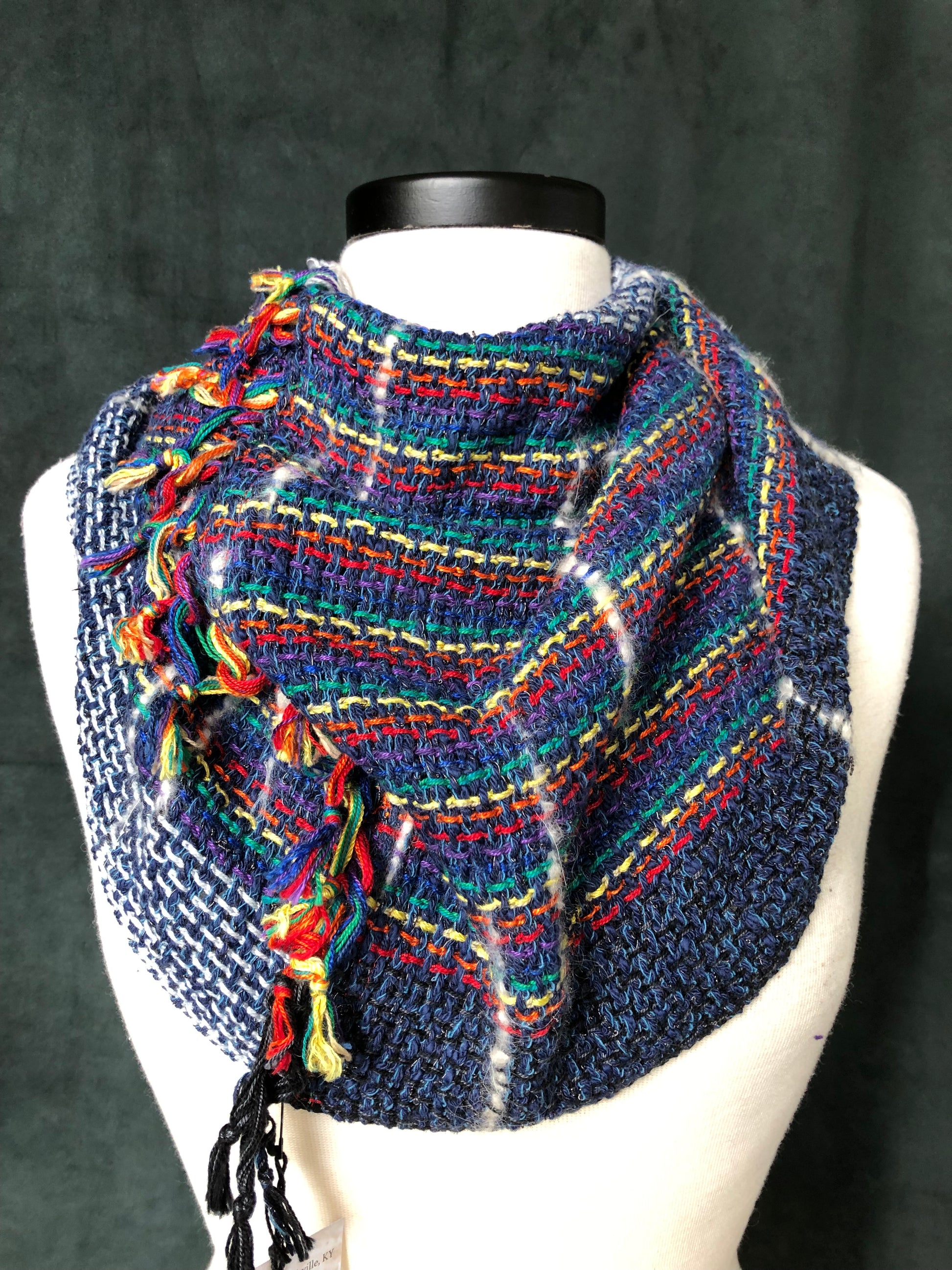 Cowls are the signature product of Bri Weaves & my favorite, both to make & to wear. They are short & wide infinity scarves; they only go ‘round your head once. I promise there’s no right or wrong way to wear them. Put it over your head & it’s perfect. Everyone comes to enjoy adjusting them their own way. I did make a video that may help if you really want direction.
