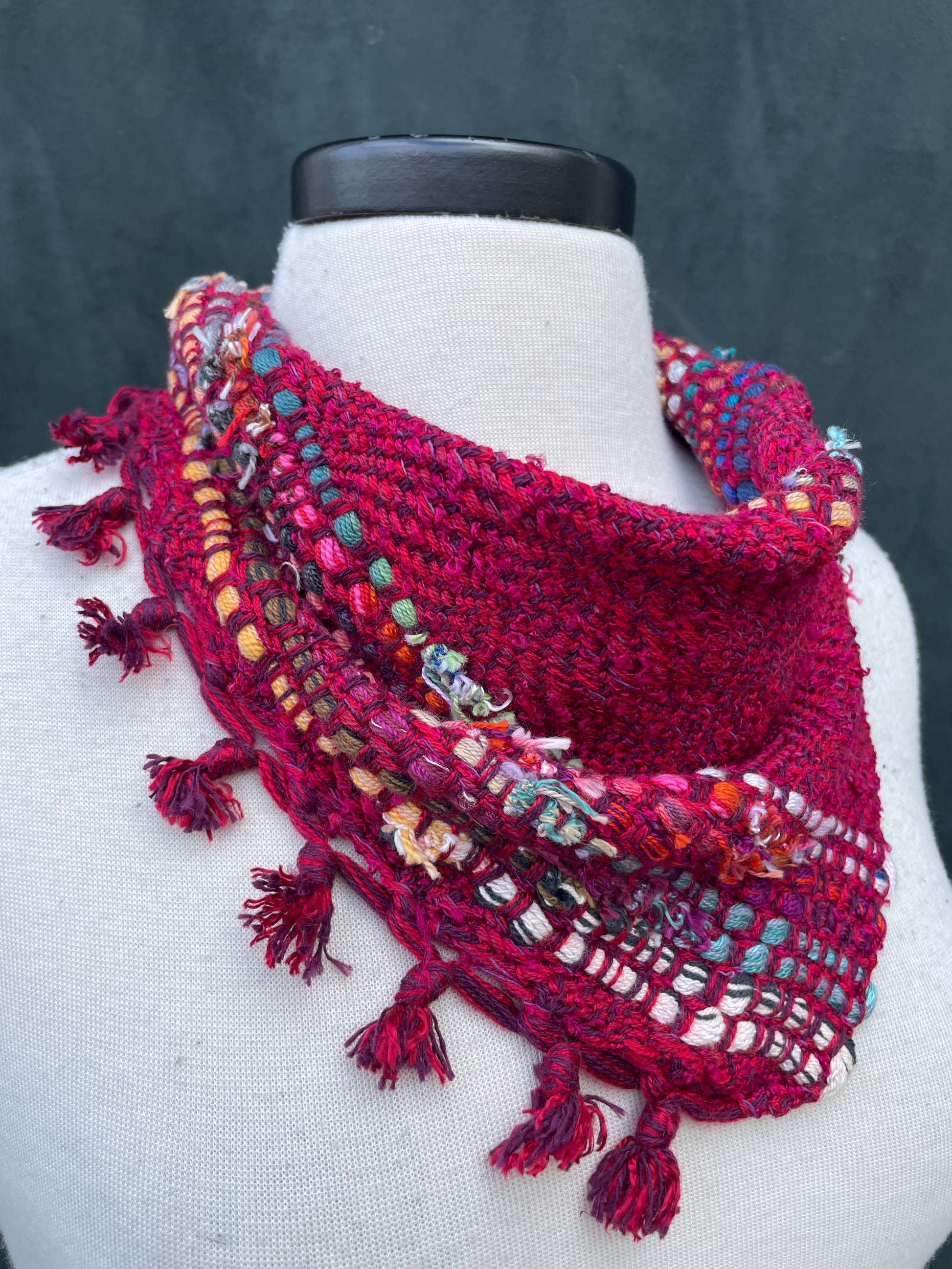 My neckerchiefs are made of a square cut on the diagonal, so there are always two that are very alike. I like to think of them as fraternal twins. Some people like to get both & share one with a loved one.