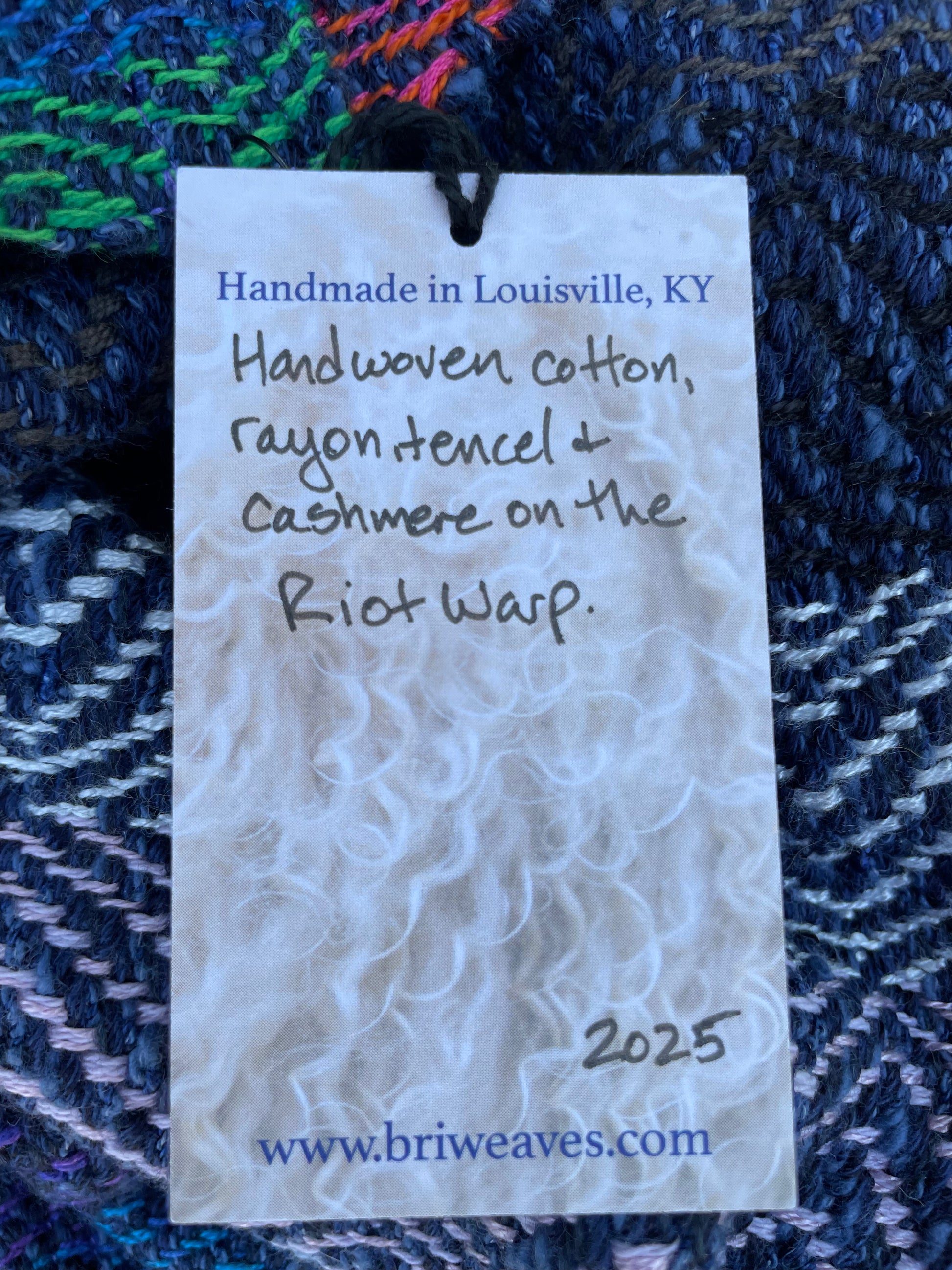 Cowls are the signature product of Bri Weaves & my favorite, both to make & to wear. They are short & wide infinity scarves; they only go ‘round your head once. I promise there’s no right or wrong way to wear them. Put it over your head & it’s perfect. Everyone comes to enjoy adjusting them their own way. I did make a video that may help if you really want direction.