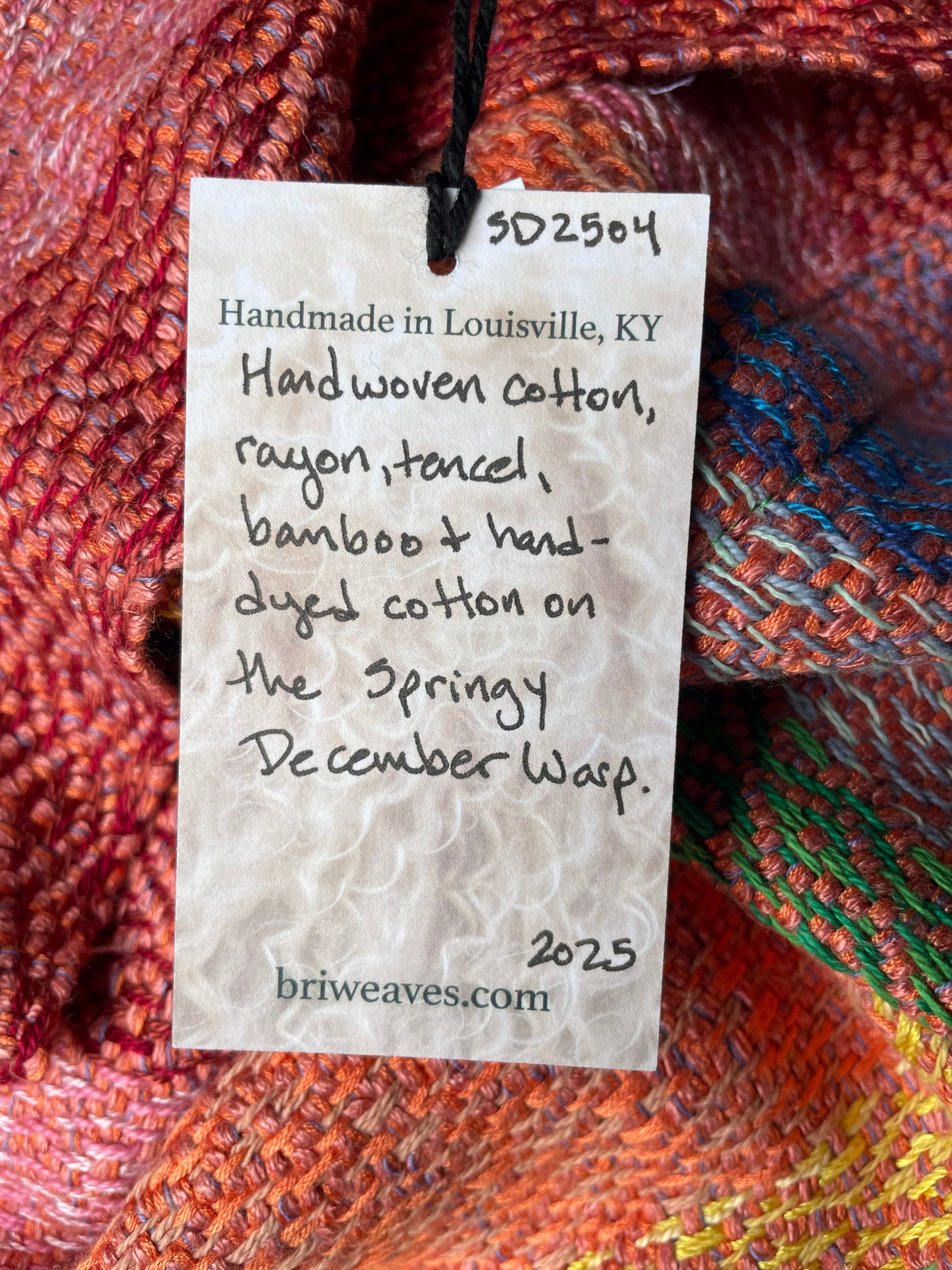 Cowls are the signature product of Bri Weaves & my favorite, both to make & to wear. They are short & wide infinity scarves; they only go ‘round your head once. I promise there’s no right or wrong way to wear them. Put it over your head & it’s perfect. Everyone comes to enjoy adjusting them their own way. I did make a video that may help if you really want direction.