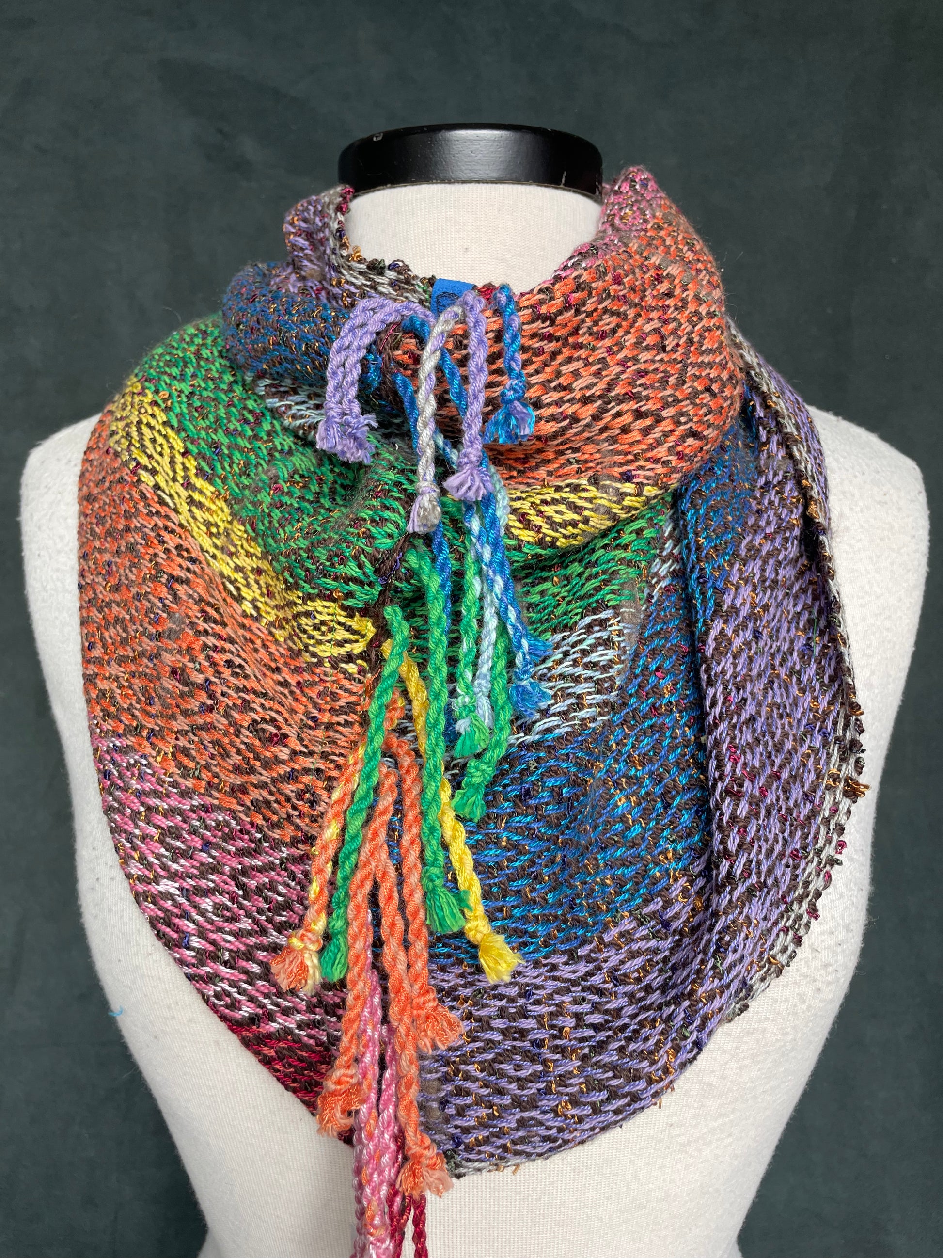 Cowls are the signature product of Bri Weaves & my favorite, both to make & to wear. They are short & wide infinity scarves; they only go ‘round your head once. I promise there’s no right or wrong way to wear them. Put it over your head & it’s perfect. Everyone comes to enjoy adjusting them their own way. I did make a video that may help if you really want direction.
