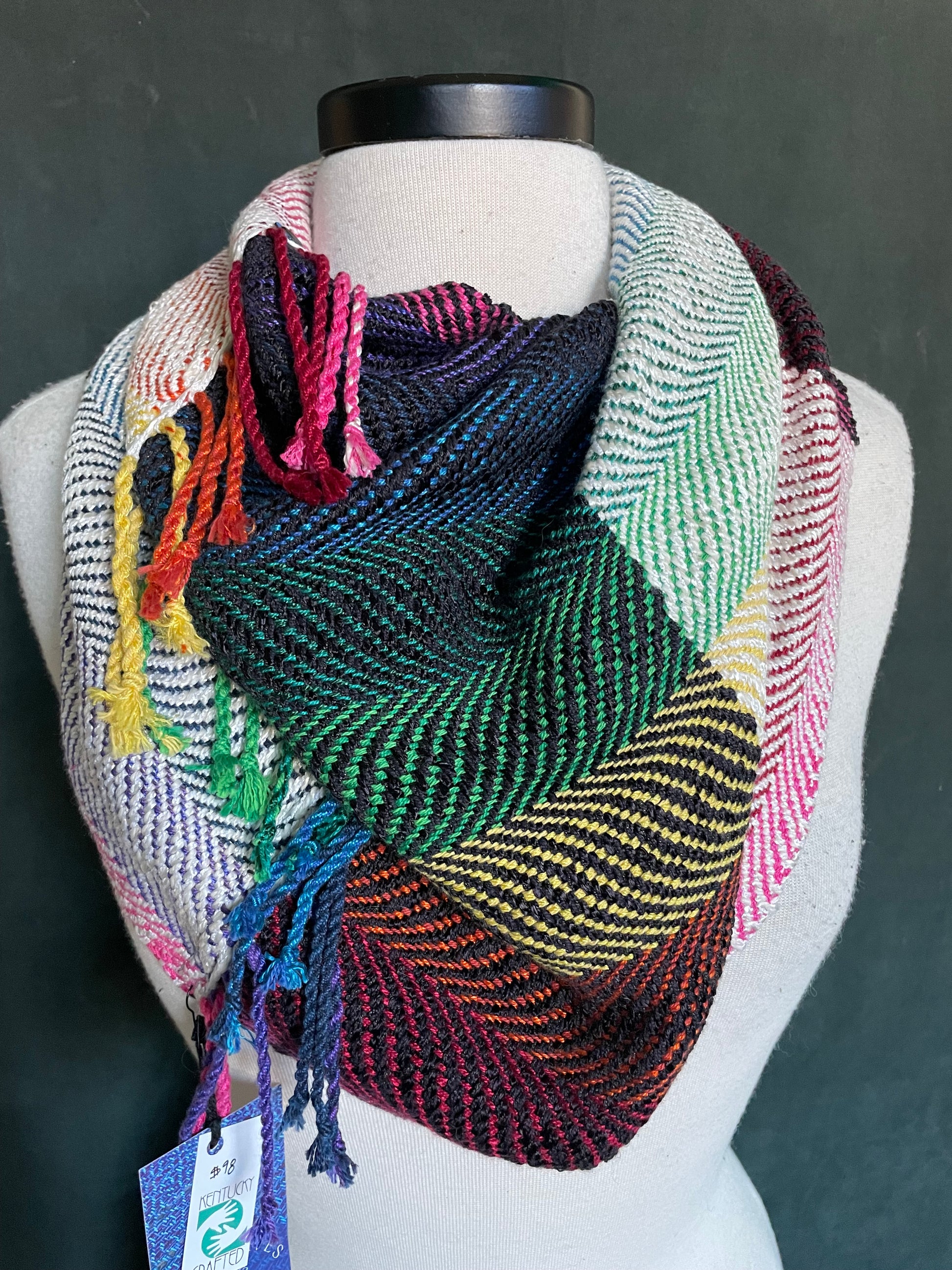 Cowls are the signature product of Bri Weaves & my favorite, both to make & to wear. They are short & wide infinity scarves; they only go ‘round your head once. I promise there’s no right or wrong way to wear them. Put it over your head & it’s perfect. Everyone comes to enjoy adjusting them their own way. I did make a video that may help if you really want direction.
