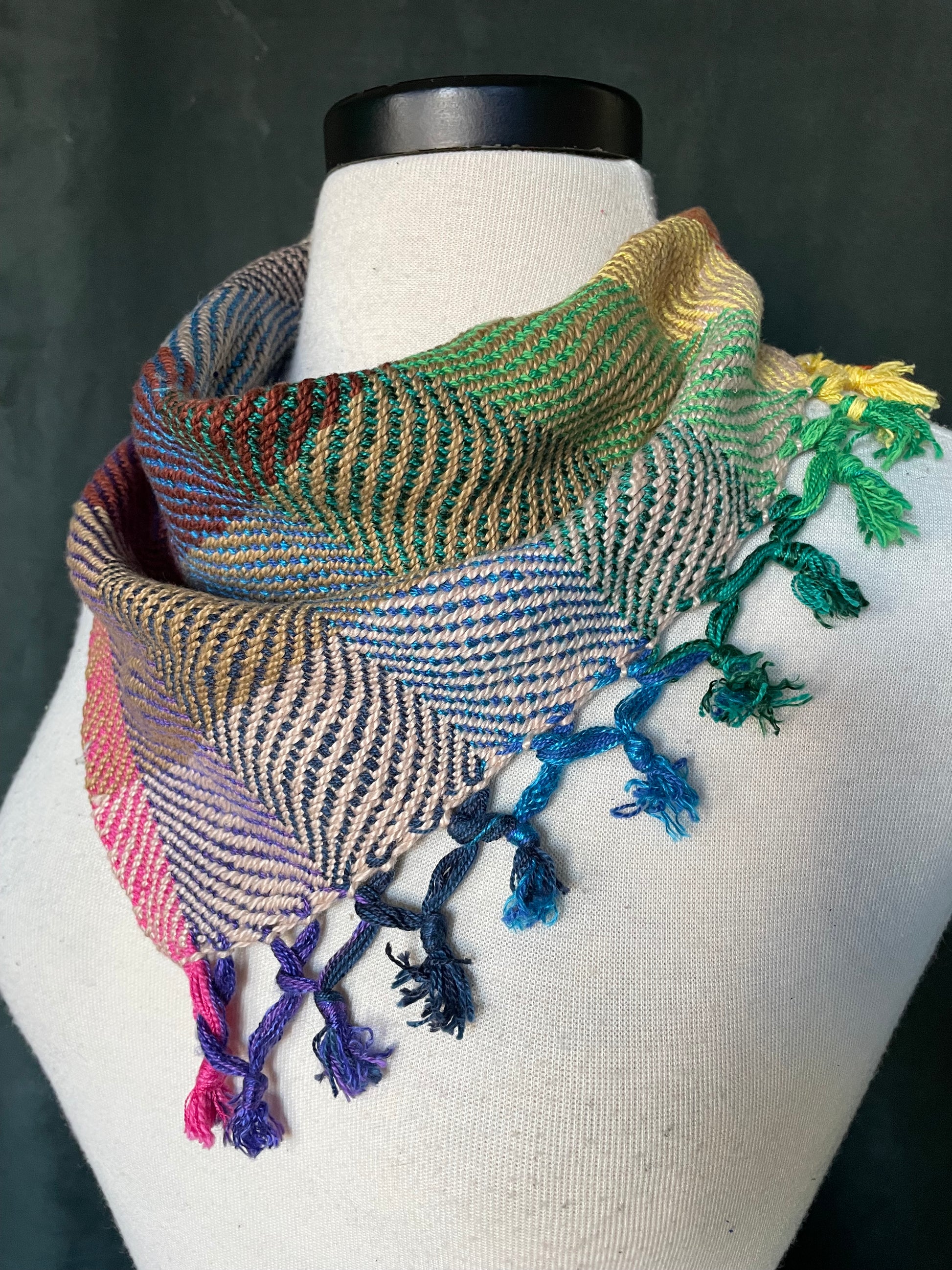 I was going for a wide array of skin tones in this one. Neckerchiefs serve well in the summer & fall, for days on the edge of cool & warm. This style is sewn closed in the back for ease; pop it over your head & you're ready to go!