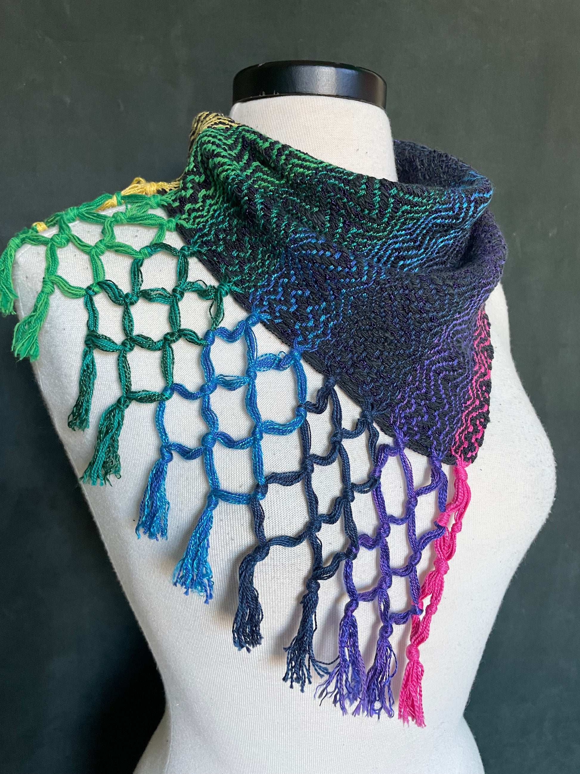 My neckerchiefs are made of a square cut on the diagonal, so there are always two that are very alike. I like to think of them as fraternal twins. Some people like to get both & share one with a loved one.